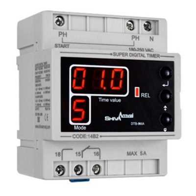 سوپر تایمر دیجیتال شیوا امواج تایمر ای با دقت و کارایی بسیار بالا و قابل استفاده در رنج وسیعی از محدوده زمانی (از 0.1 ثانیه تا 999 ساعت) می باشد. همچنین تایمر می تواند در 4 حالت دهم ثانیه, ثانیه, دقیقه و ساعت به صورت فلاشر کار کند. سوپر تایمر دیجیتال شیوا امواج را میتوان به صورت تایمر تاخیر در وصل مورد استفاده قرار داد. تغذیه این تایمر از ترمینال START مجزا می باشد.